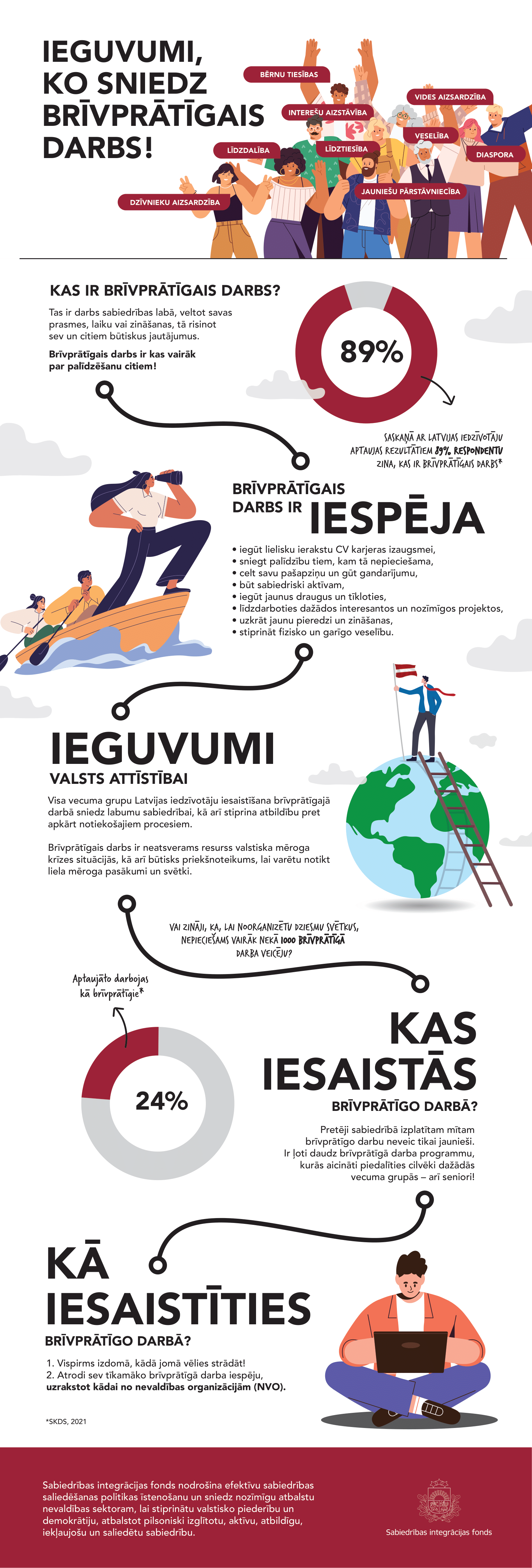 Brīvprātīgais darbs ir darbs sabiedrības labā, veltot savas prasmes, laiku vai zināšanas, tādējādi risinot jautājumus, kas būtiski visiem! Piesakies brīvprātīgajā darbā!