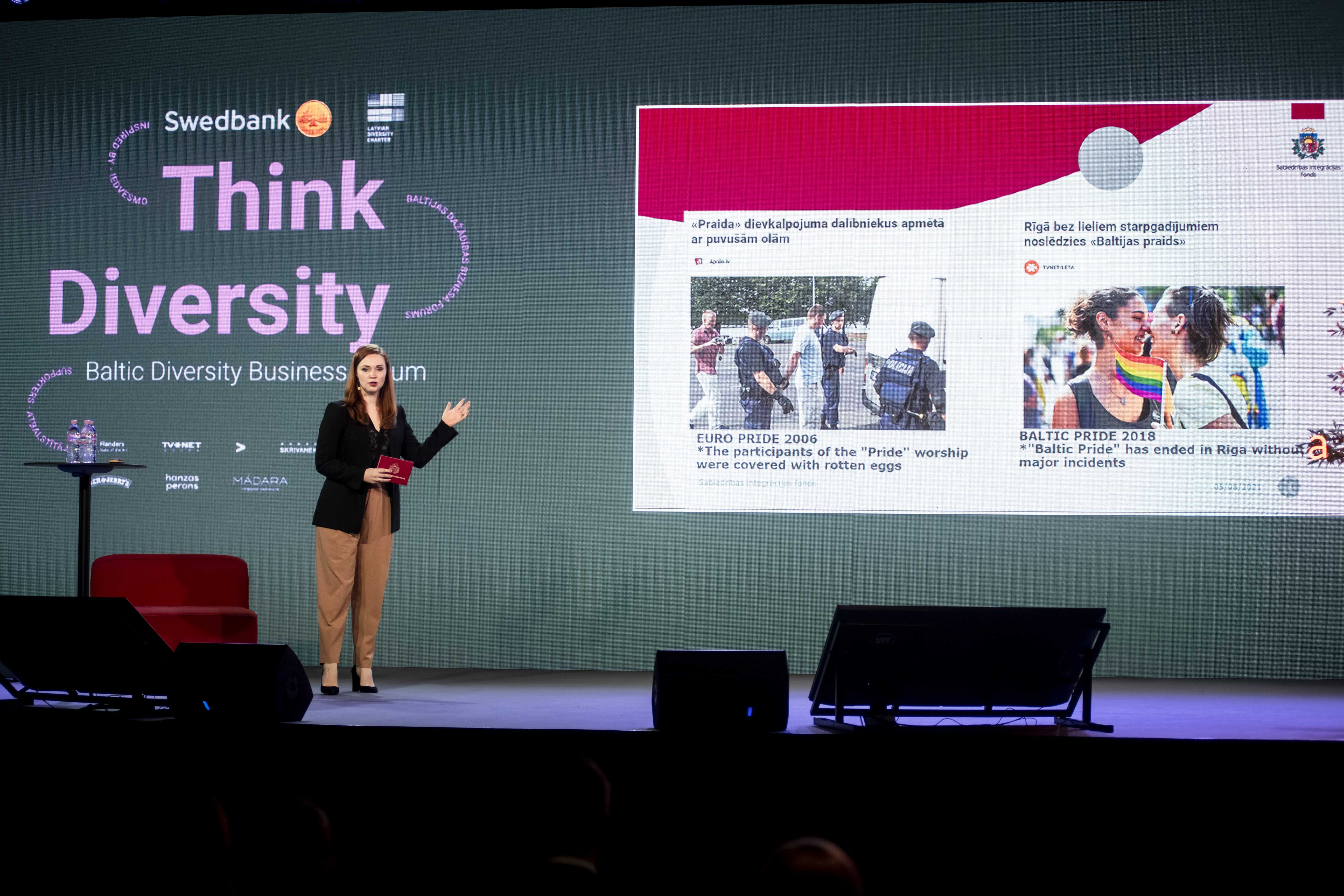 Konferencē runāja pārstāvji no Latvijas Dažādības hartas, Eiropas Komisijas, Swedbank, Accenture, COBALT, Printful un citi.